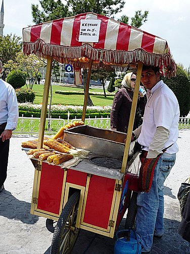 "銅鑼灣"擺賣的粟米攤檔、栗子檔和圈餅檔